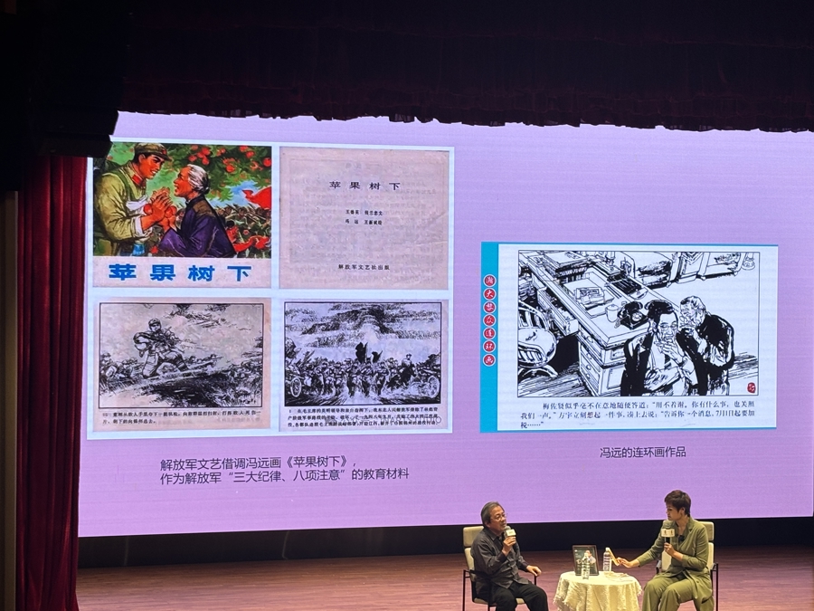 11月6日晚,“艺道大咖:米雪对话海上文化名人访谈”第五季第三期活动在大宁路街道党群服务中心举行。中央文史馆副馆长、中国美术家协会名誉主席冯远作为本期嘉宾,与现场观众分享他四十余载艺术生涯的思考与感悟。访谈从冯远艺术生涯中的关键节点徐徐铺展,北大荒的青春岁月,在他心中埋下关注“人”与“土地”的创作火种;海派文化“兼容并蓄”的特质,又为他提供了艺术滋养……冯远带领观众,循着数十年的创作轨迹,溯源他艺术风格与精神世界的形成。活动开始前,冯远接受解放日报·上观新闻记者专访。