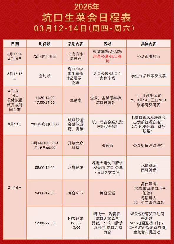 举办地点:荔湾区冲口街道坑口村(核心区域:坑口观音庙、坑口大街)