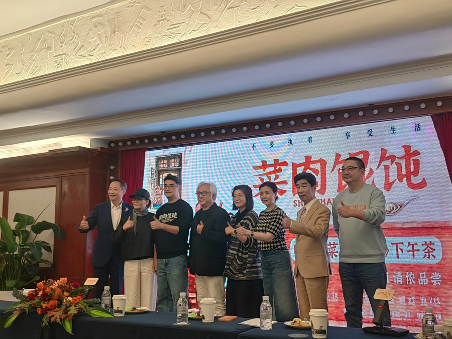 当天,几位主演第一次完整看了《菜肉馄饨》,讲起创作中的故事,潘虹、周野芒都禁不住哽咽。电影从一碗承载着上海人亲情记忆的菜肉馄饨开始,银幕上流淌着两代人的温情。片中有场一家三口围在一起下馄饨的戏份,老汪被小汪调侃“馄饨没有妈妈包得好”,大家开怀大笑。“看到这个镜头时,我突然被感动了。老汪一开始心里好像瘸着一条腿走路,到这一刻,他才真正‘完整’了。”周野芒说着,眼泪又涌出来,“导演和编剧在拍摄中没刻意强调感人,但回头想时,会忽然有一个浪拍过来。这部电影很高级,我们一边演,一边也在体会、享受拍摄的过程。”