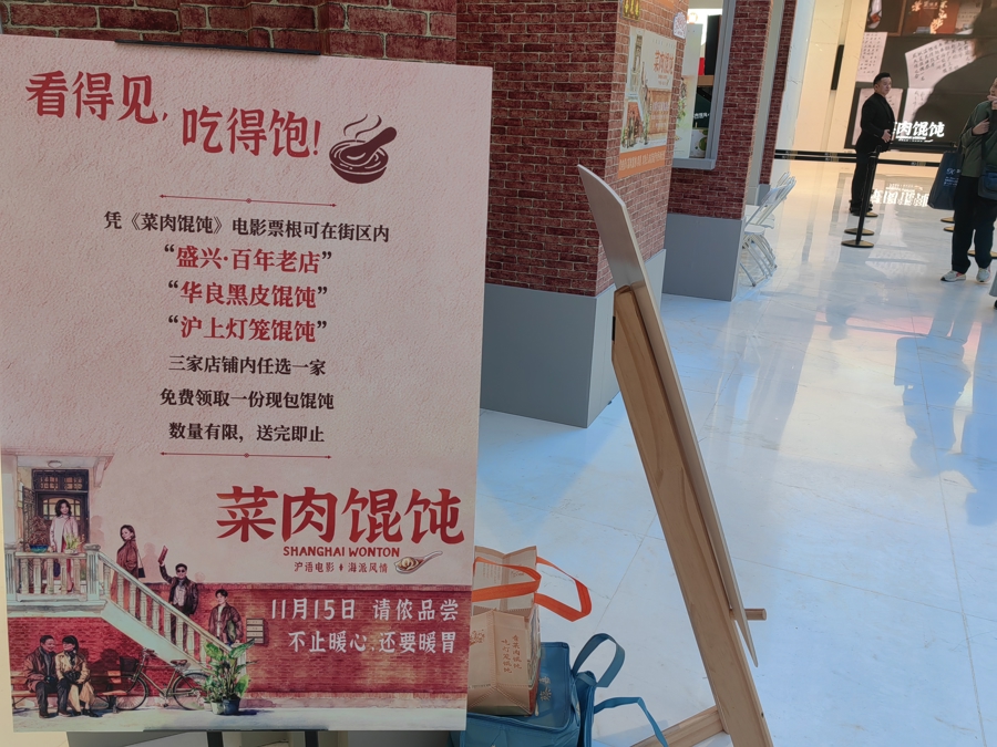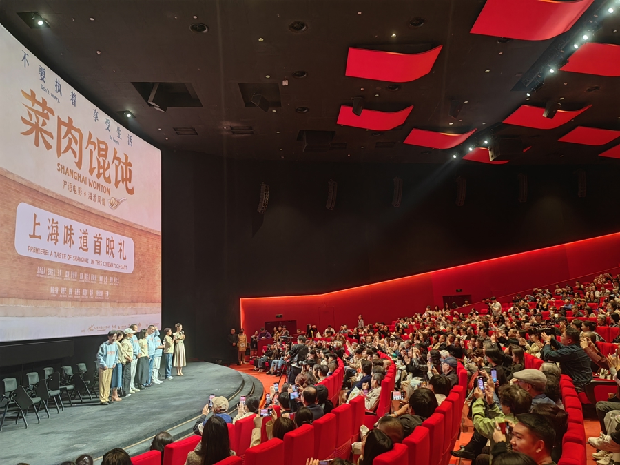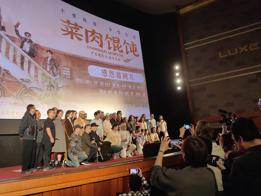 馄饨包好,终于下锅。上影新片《菜肉馄饨》上海首映礼11月6日在上海影城举行,众多主创走入影院,与首批观众互动。作为一部沪语电影,影片以菜肉馄饨这一家常菜为小切口,讲述了两代人间的温情故事。